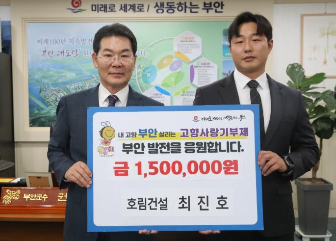 ![]() 호림건설 최진호 이사, 부안군 고향사랑기부금 150만원 기탁 |