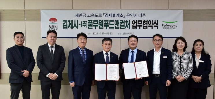 정성주 김제시장은 “양질의 일자리 창출을 위해서는 기업과 지역사회의 상생이 필요하다”며 “김제휴게소가 지역을 대표하는 명품 휴식 공간이 될 수 있도록 지원을 아끼지않겠다”고 전했다.