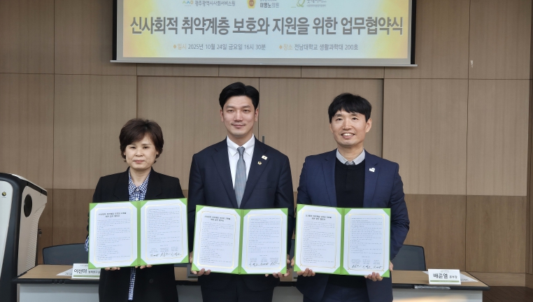 이명노 의원은 “이번 협약이 단순한 지원을 넘어 지역 주민들의 일상적 회복과 자립을 돕는 제도적 개선의 계기가 되길 바란다”며, “앞으로도 굿네이버스 광주지부와의 긴밀한 협력을 이어가겠다”고 말했다.