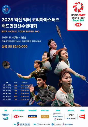 익산시는 오는 11월 4일부터 9일까지 원광대학교 문화체육관에서 '2025 익산 빅터 코리아마스터즈 배드민턴선수권대회'가 열린다고 30일 밝혔다.