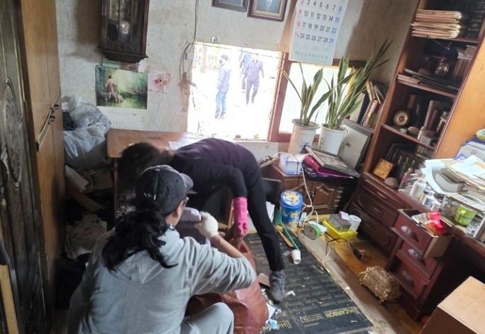 이날 대청소를 지원한 ‘좋은 사람들 모임(조사모, 회장 김윤)’ 회원들은 추운 날씨에도 불구하고 마당의 잡초를 제거하고 방과 주방, 화장실 등에서 쓰레기를 치우는 등 집안 전체를 깨끗하게 청소했다.