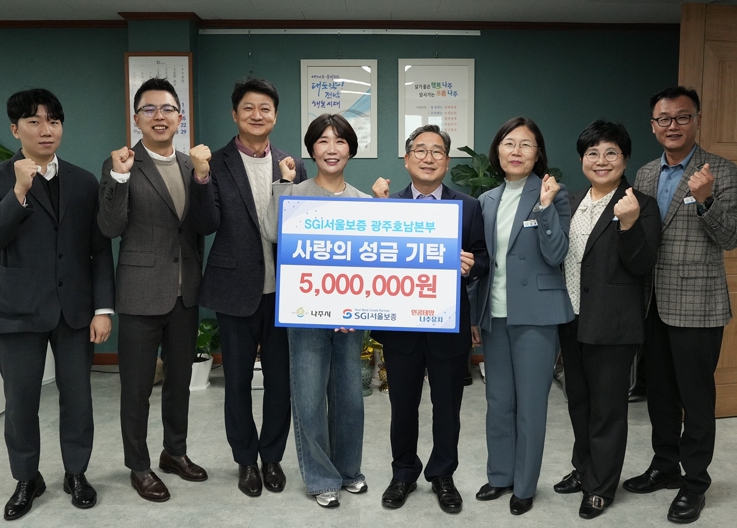 나주시는 SGI서울보증 광주호남본부(본부장 조지영)가 아동복지시설 ‘백민원’에 성금 500만 원을 기탁했다고 4일 밝혔다.