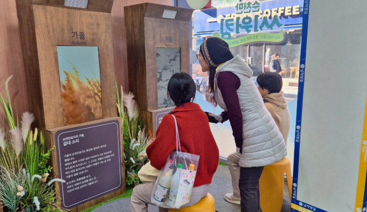 이번 전시관은 순천의 자연과 남파랑길 61‧62코스를 감각적으로 체험할 수 있도록 기획된 공간으로, 도심 속에서 순천의 사계를 ‘소리’로 느낄 수 있는 몰입형 ‘사운드체어’ 콘텐츠가 큰 관심을 모았다.