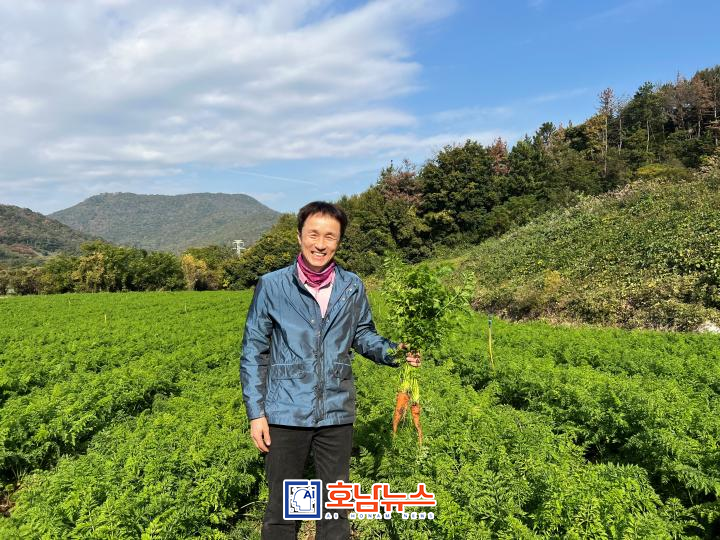 He currently cultivates about 24,800 square meters (7,500 pyeong) of farmland, producing around 50 tons of eco-friendly carrots annually. About 70% of the harvest is supplied to school meal programs in Yeosu, Suncheon, and Gwangyang, while the remaining 30% is sold directly to consumers through online platforms such as “Nongra.” His annual income from these activities reaches approximately 90 million won.