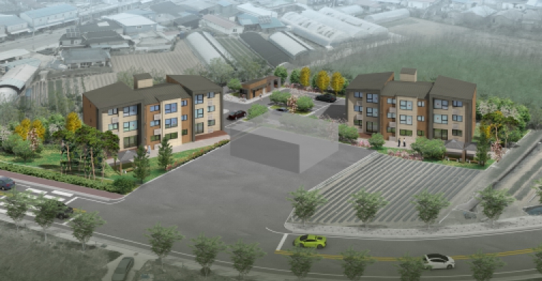 ‘성수면 행복주택’은 성수면 외궁리 690번지 일원(외 7필지) 2,026㎡ 부지에 조성되며, 지상 3층 다가구주택(연면적 1,086.9㎡) 형태로 74㎡형 9세대, 61㎡형 3세대 등 총 12세대 규모다.