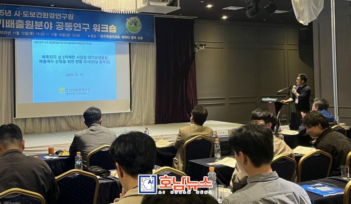 ![]() 대기배출 분야 공동연구 워크숍 발표 / 사진제공=전라남도 |