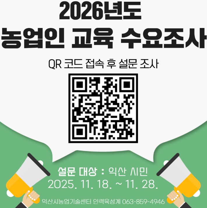 조사는 익산시농업기술센터 누리집에서 게시된 빠른 응답, 이른바 큐알(QR) 코드를 통해 참여할 수 있다.