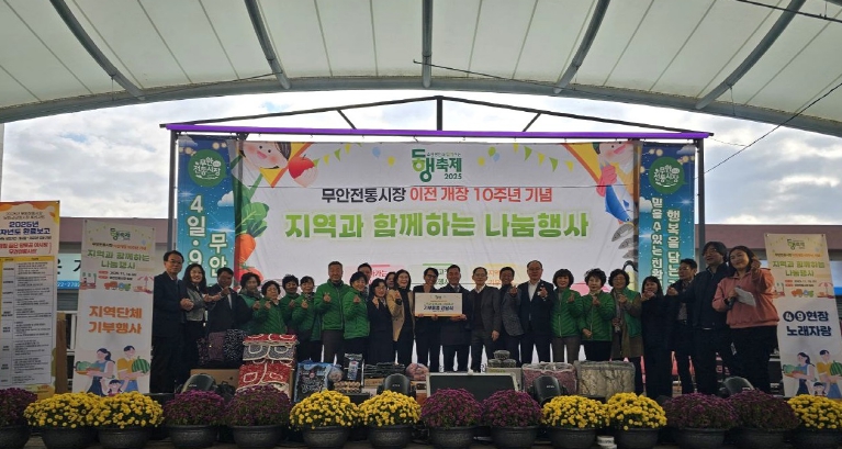 김산 군수는 “무안전통시장 이전 10주년을 기념하여 전통시장을 찾아주신 고객들에게 사은품을 증정하고, 어려운 이웃들에게 나눔을 실천하는 뜻깊은 자리였다”며, “앞으로도 전통시장 활성화와 상권 경쟁력 강화를 위한 지원을 지속해 나가겠다”고 소감을 밝혔다.