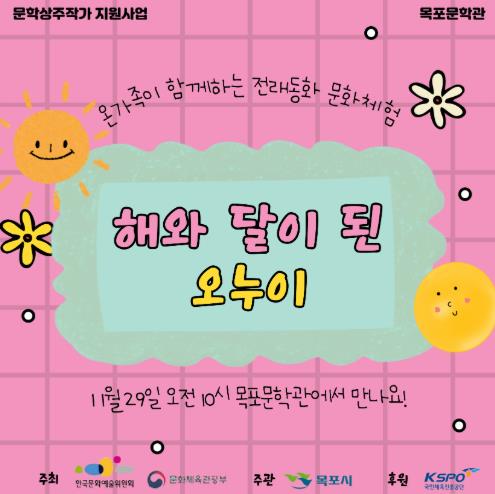 목포시 관계자는 “전래동화를 기반으로 한 공연과 체험을 통해 가족이 함께 공감하고 즐길 수 있는 문학문화 체험 기회를 마련하고자 했다”며 “지역 어린이와 가족들의 많은 관심과 참여를 바란다”고 전했다.