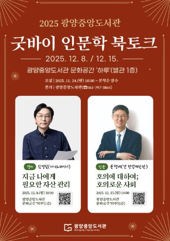 ![]() 광양중앙도서관, '굿바이 인문학 북토크' 운영 |