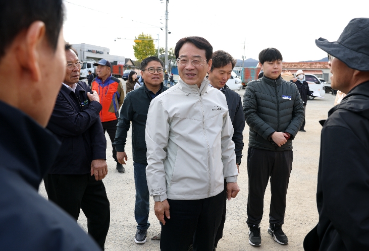 ![]() 강진원 강진군수가 지난 11일 수매현장을 방문해 격려하고 있다. |