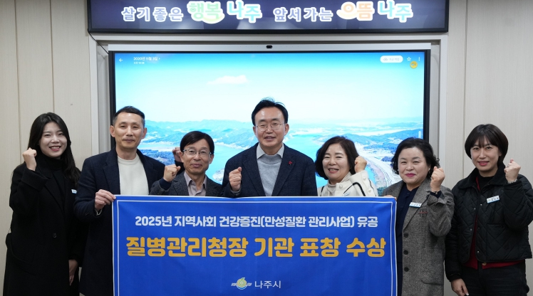 28일 나주시에 따르면 보건소 건강증진과는 2025년 호남권 만성질환 관리사업 ‘지역사회 건강증진’ 분야에서 우수 유공기관으로 선정돼 질병관리청장 표창을 수상했다.
