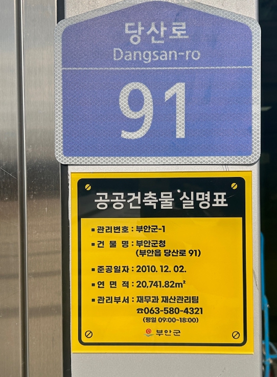 이번에 부착되는 관리실명표에는 건물명, 주소, 준공일자, 연면적 등 기본 정보는 물론 해당 시설물을 직접 관리하는 부서명과 연락처가 명확하게 기재된다.