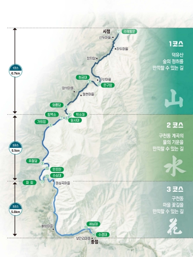 무주군은 2026년 1월부터 실시설계 및 공사 추진에 착수할 계획으로, 덕유산과 구천동 33경의 풍부한 자연·생태·문화 자원을 활용한 탐방로 조성에 큰 관심이 모아지고 있다.