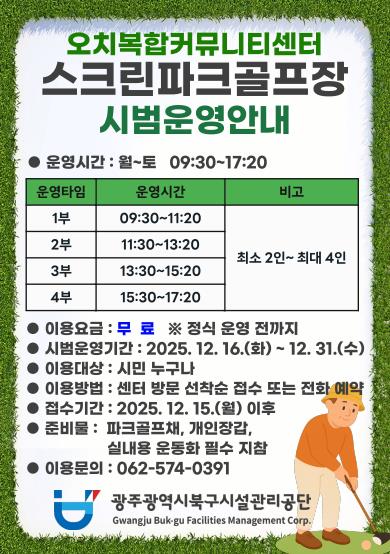 ![]() 북구시설관리공단 오치복합커뮤니티센터, 실내스크린파크골프장 개장 |