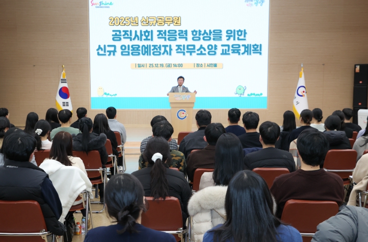 이번 교육은 신규 공직자들의 공직사회 적응과 시정 이해를 돕기 위해 마련됐으며, 선배 공무원들이 강사로 참여해 공직생활 전반에 필요한 실무 경험과 조언을 전달했다.