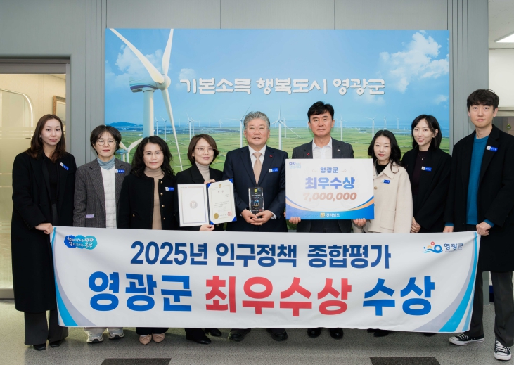 ![]() 2025 전라남도 인구정책 우수 시‧군 평가 영광군,‘최우수상’ 수상 |