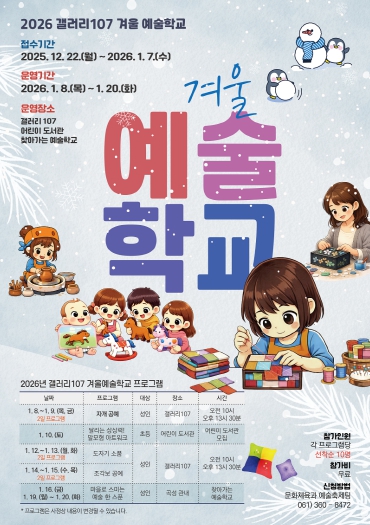 ![]() 갤러리 107 겨울 예술학교 프로그램 참가자 모집 포스터 |