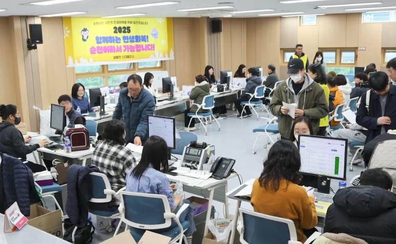 ![]() 해룡면 신대출장소가 민생회복지원금 수령을 위해 방문한 시민들로 붐비고 있다. |