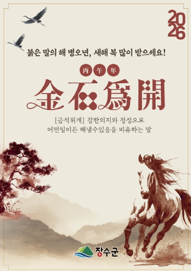 장수군은 2026년은 그동안 도전과 끈기를 바탕으로 이뤄낸 성과를 군민과 함께 나누며 실질적인 지역발전을 완성하는 해로 만들기 위해 모든 역량을 집중하겠다는 계획이다.