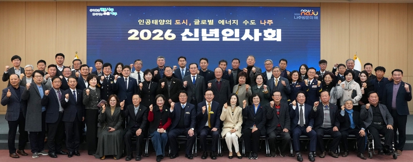 ![]() 나주시가 6일 시청 대회의실에서 ‘2026 신년 인사회’를 개최했다. |
