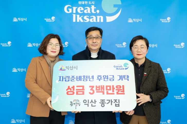 시 관계자는 "추운 겨울에 이웃을 향한 따뜻한 사랑을 실천해 주신 익산 종가집에 깊이 감사드린다"며 "익산시도 자립준비청년들이 건강한 사회 구성원으로 행복하게 성장할 수 있도록 지역사회와 손잡고 세심한 지원을 아끼지 않겠다"고 전했다.