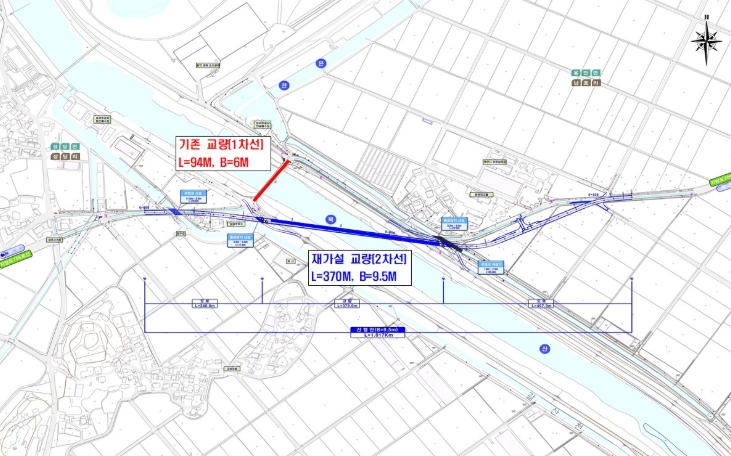 산북천 유량과 홍수위, 제방 형상, 농경지 이용 현황, 교통량 등을 종합 분석해 치수 안전성과 주민 편의를 함께 확보할 수 있는 최적의 노선을 도출했다.