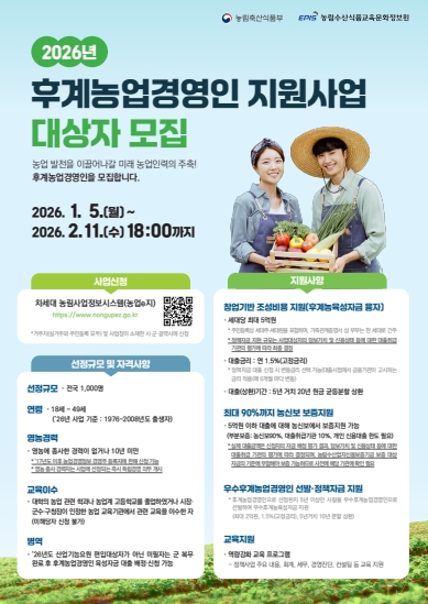 ![]() 2026년 후계농업경영인 육성사업 대상자 모집 |