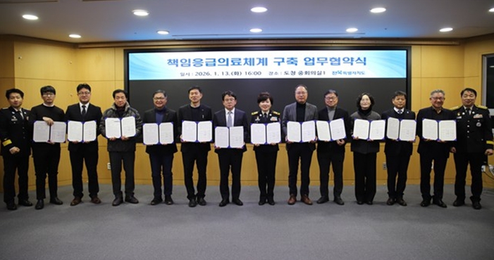 이오숙 소방본부장은 “이번 업무협약은 응급환자 수용 지연 문제를 해소하기 위해 소방과 보건, 의료기관이 공동으로 책임을 나누고 이를 현장에서 이행하기로 한 약속”이라며, “각 기관이 협약 내용을 성실히 준수해 응급환자가 제때 적정한 치료를 받을 수 있는 책임응급의료체계를 정착시켜 나가겠다”고 밝혔다.