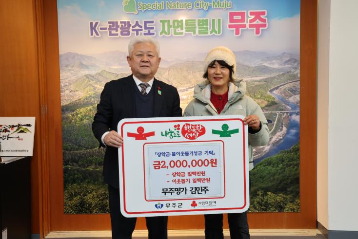 ![]() 무주군, “서로 도우며 함께 키워요!” 무주명가, 장학금 & 이웃돕기 성금 2백만 원 기탁 |