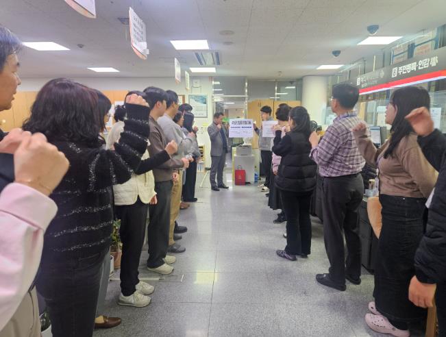이날 직원들은 새해 친절 모토인 ‘한 걸음 더 가까이, 한 번 더 감동을’과 이달의 친절 문구인 ‘문턱은 낮게, 친절은 높게!’를 복창하며 친절 실천을 다짐했다.