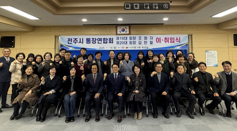 전주시는 19일 시청 4층 회의실에서 ‘전주시 통장연합회장 이·취임식’을 개최했다.