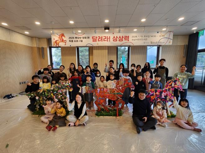지난 10일 진행된 아트X라이브러리 ‘달려라! 상상력!’은 붉은 말의 해를 맞아 어린이가족 40명이 함께 참여한 예술 체험 프로그램으로, 다양한 미술 재료를 활용해 말 모형을 꾸미며 가족 간 소통과 창의적 표현의 시간을 제공했다.