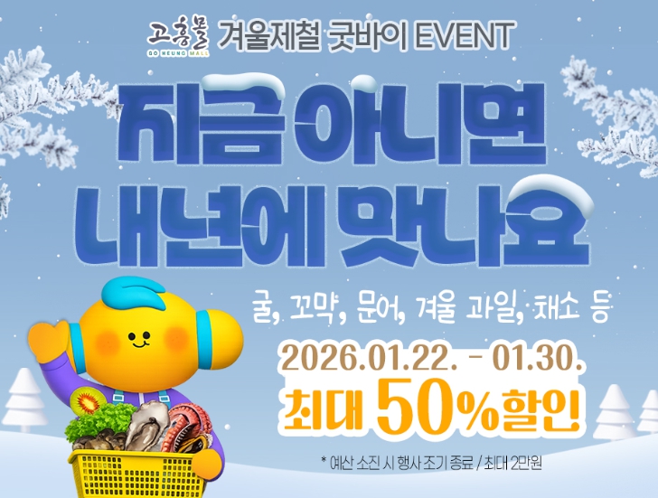 고흥몰은 이러한 제철 특성을 반영해 ‘지금 아니면 내년에나 맛볼 수 있는 겨울 먹거리’를 핵심 메시지로 내세우고, 소비자 체감 혜택을 높이기 위해 대폭적인 할인 혜택을 마련했다.