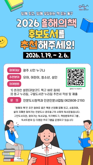 동구 관계자는 “올해의 책 선정은 지역 공동체가 함께 읽고 토론하는 독서 여정의 출발점”이라면서 “책을 통해 일상 속에서 사회적 공감과 참여가 자연스럽게 이어지길 바란다”고 말했다.