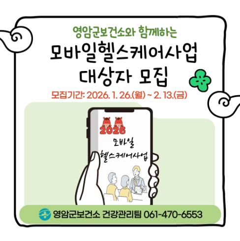 모바일 헬스케어 사업 참여 신청은 영암군보건소 건강관리팀 방문 및 전화로 할 수 있다.