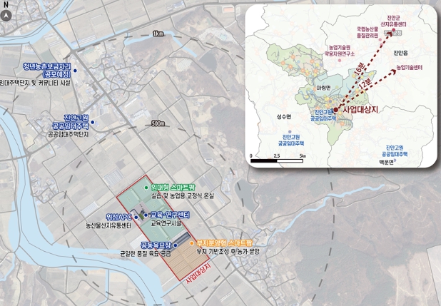 신규조성형으로 선정된 진안군은 마령면 일원에 임대형 스마트팜과 인력양성 스마트팜, 교육연구센터, 분양형 스마트팜 단지 등을 집적 조성하며, 핵심시설 구축에 국비 200억 원이 투입된다.