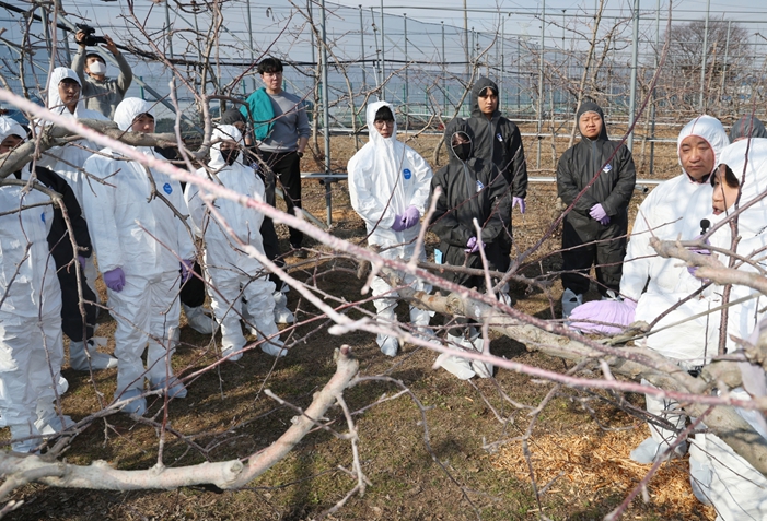 ![]() 관내 사과·배 재배 농가를 대상으로 겨울철 궤양 제거 작업과 예방 중심 방제 지도를 강화하며 선제적 대응에 나서고 있다 |