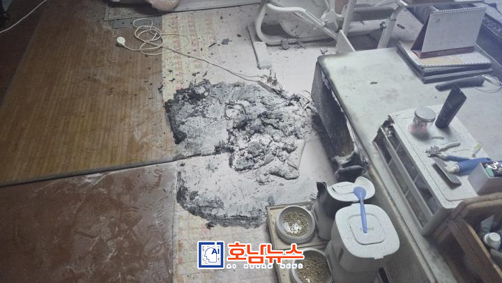 A fire believed to have been caused by a household electric heating device broke out at an apartment complex in downtown Mokpo, but thanks to the fire department’s rapid initial response and residents’ self-evacuation, the blaze was extinguished without any casualties.