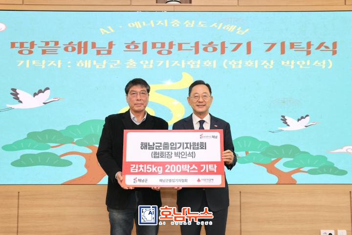 2026년 2월 11일 오전 11시, 해남군 출입기자협회(회장 박인석)는 해남군 14개 읍·면의 어려운 이웃들을 위해 ‘사랑의 김치 나눔’ 전달식을 가졌다.