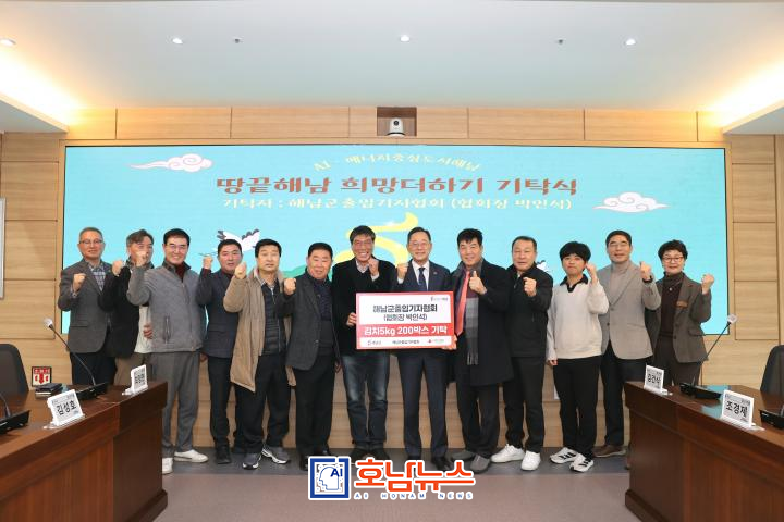 이날 박인석 회장은 명현관 해남군수에게 김치 5kg 200박스를 전달하며, 지역 곳곳에 따뜻한 마음을 보탰다.