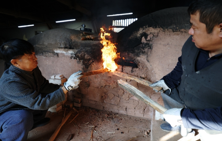 ![]() 강진군 화목가마에 불 지피는 도공 |