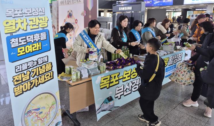 현장에서는 부산·경남에서 목포까지 이어지는 철도노선과 연계 관광 코스를 안내하고, 주요 관광지·핫플레이스·여행 혜택을 담은 리플릿과 전남 관광지도, 전남산 특산품을 제공해 부산역과 부전역 이용객들로부터 큰 관심과 호응을 얻었다.
