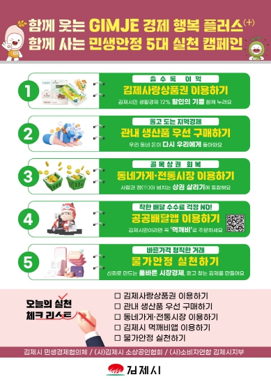 ![]() 함께 웃고, 함께 사는 GIMJE 민생경제 플러스 실천 캠페인 전개 |