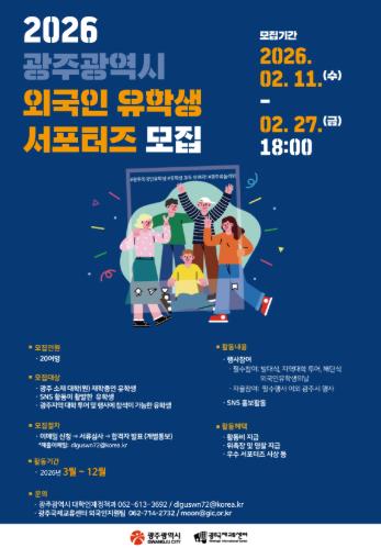 ‘유학생 서포터즈’는 사회관계망서비스(SNS) 등을 통해 광주 유학생활·관광정보를 알리고, 광주시의 다양한 행사에 직접 참여하는 등 민간외교관 역할을 맡게 된다.