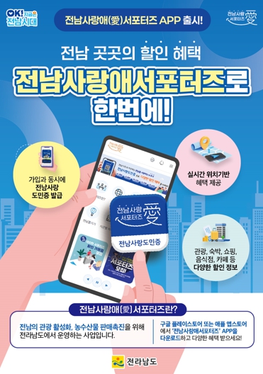 그동안 전남도는 생활인구 확보와 관광 소비 증대를 위해 서포터즈를 운영했다. 이번 통합 플랫폼 개발을 통해 할인가맹점 정보 제공과 도정 소식 안내 등 서포터즈 활동 전반을 아우르는 ‘원스톱 서비스’ 환경을 구축하게 됐다.
