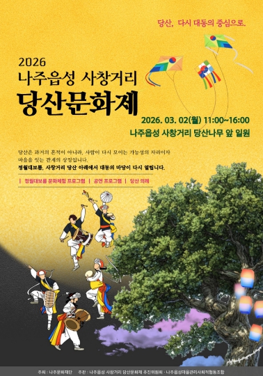 김찬동 나주문화재단 대표이사는 “이번 당산문화제가 시민들이 지역 전통문화의 가치를 되새기고 공동체의 의미를 공유하는 계기가 되길 바란다”며 “앞으로도 원도심 자원을 기반으로 나주만의 문화 브랜드를 지속적으로 확장해 나가겠다”고 밝혔다.