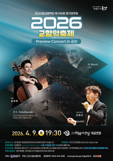 이번 공연은 4월 15일 서울 예술의전당 콘서트홀에서 열리는 ‘교향악축제’ 무대에 앞서 동일한 프로그램을 먼저 선보이는 프리뷰 공연으로, 군산 시민들이 서울 공연 프로그램을 가장 먼저 감상할 수 있는 자리로 마련됐다.