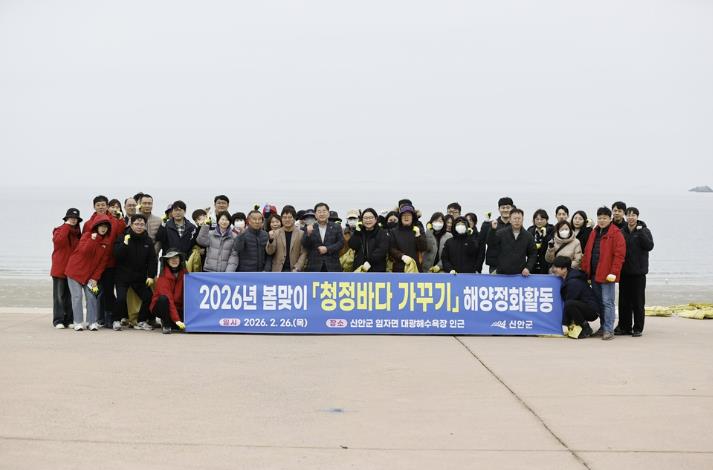 지난 26일 임자면 대광해수욕장 일원에서 신안군 공무원 70여 명이 대거 참여한 가운데 실시된 이번 활동은 2월 27일부터 3월 2일까지 임자면에서 열리는 ‘2026 섬 홍매화 축제’ 개최를 앞두고 추진된 것으로, 봄철 관광객 증가에 대비해 깨끗한 해변과 바다를 유지하기 위한 선제적 조치로 기획됐다.