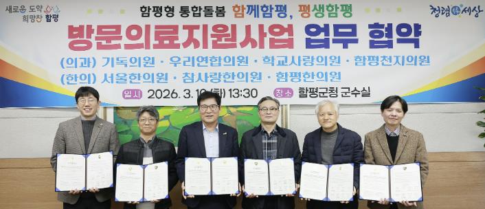협약에 따라 함평군은 서비스 대상자 발굴 및 연계를 총괄 지원하며, 협약의료기관의 의사와 함평군의 간호사·사회복지사가 팀을 이뤄 대상자에게 맞춤형 방문 의료서비스를 제공할 예정이다.
